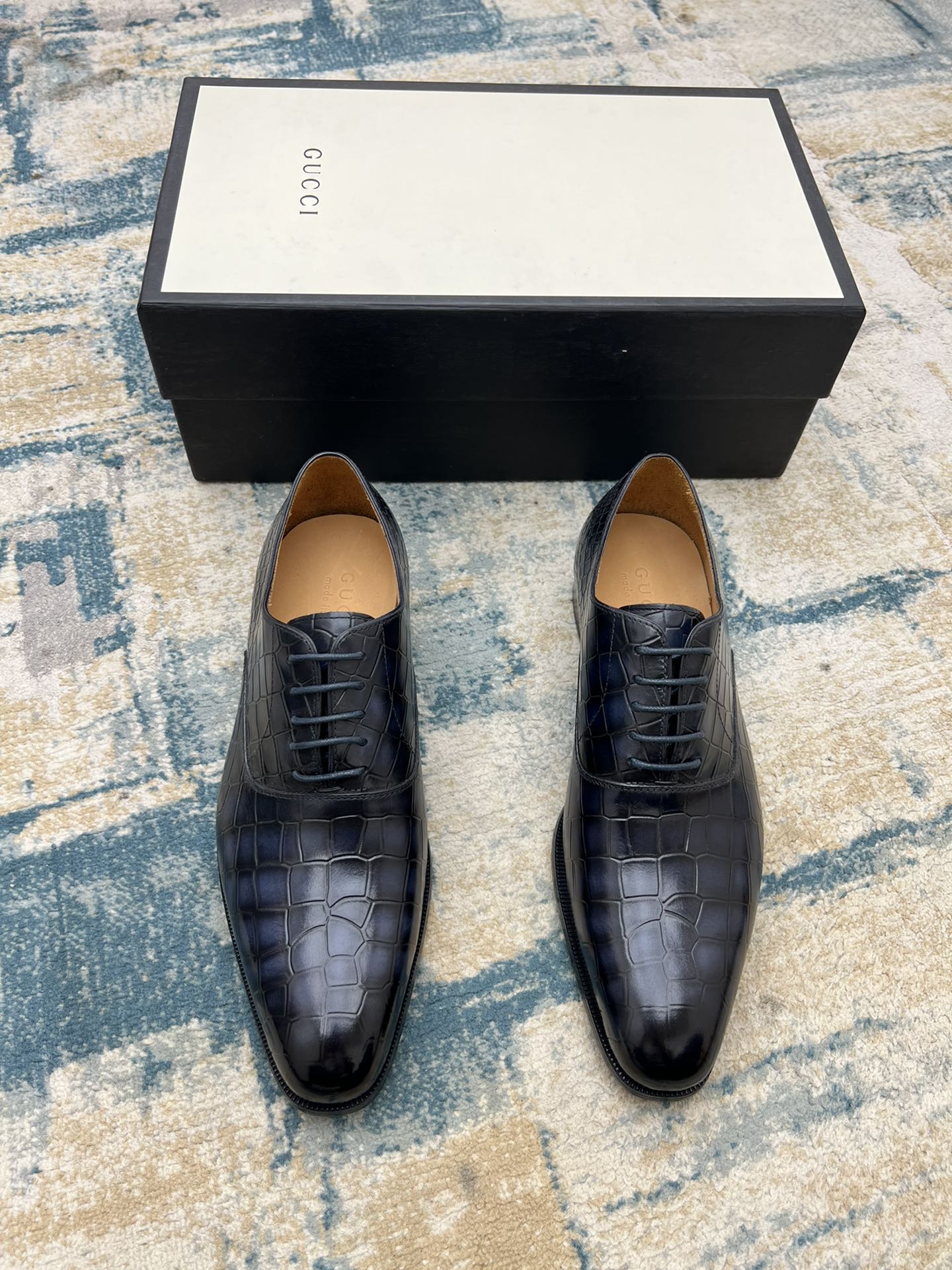 GG Men's Dress Shoe Blue Crocodile Embossed Calfskin 533107