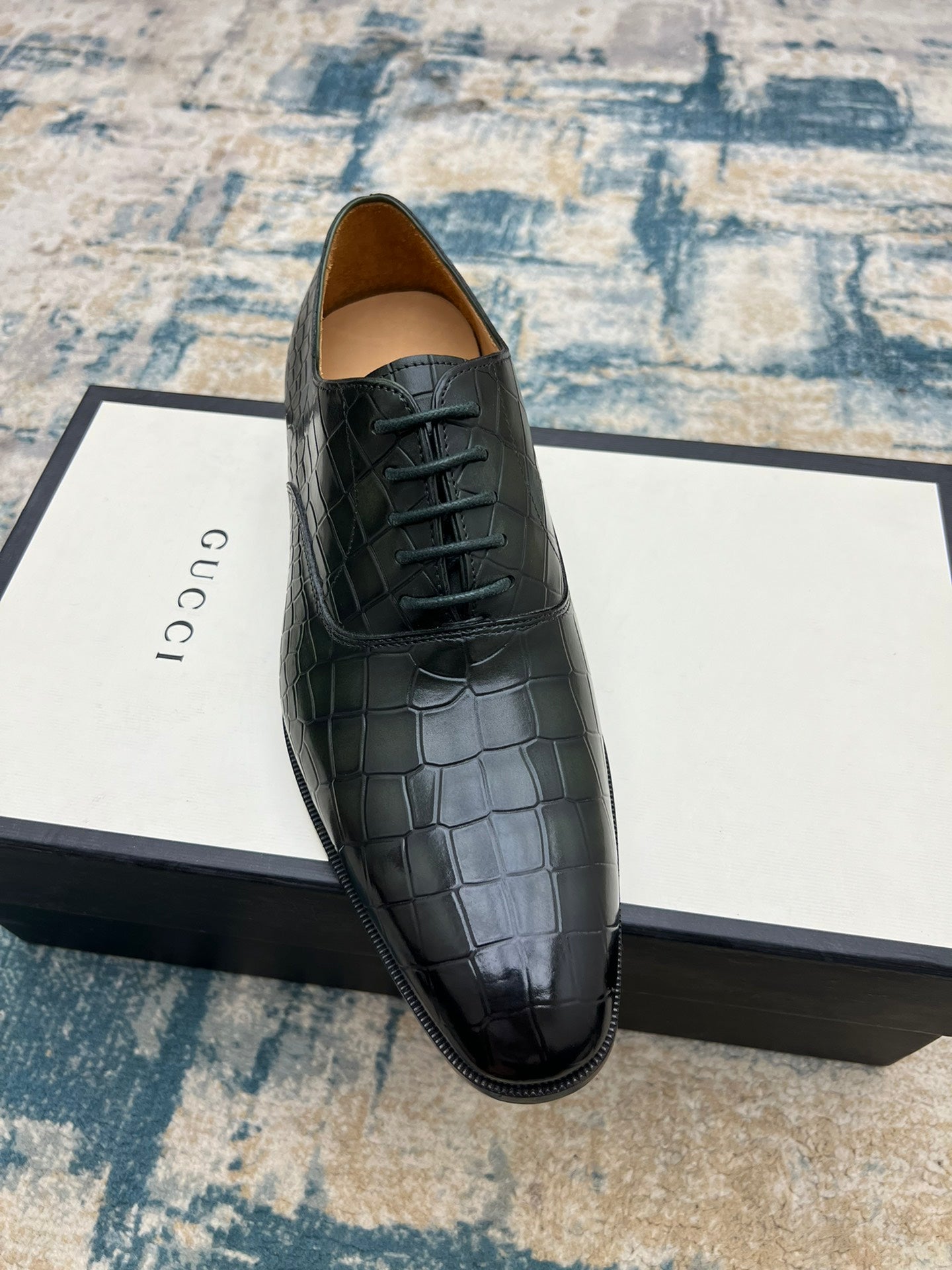 GG Men's Dress Shoe Green Crocodile Embossed Calfskin 533109
