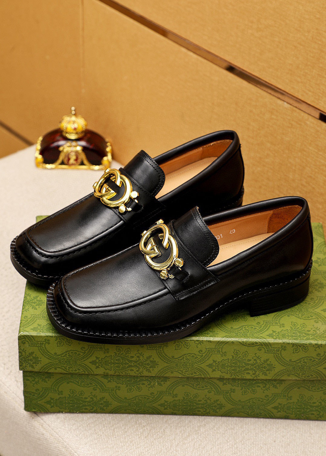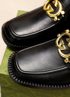 GG Men's Loafer Black GG Gold Cowhide 736977