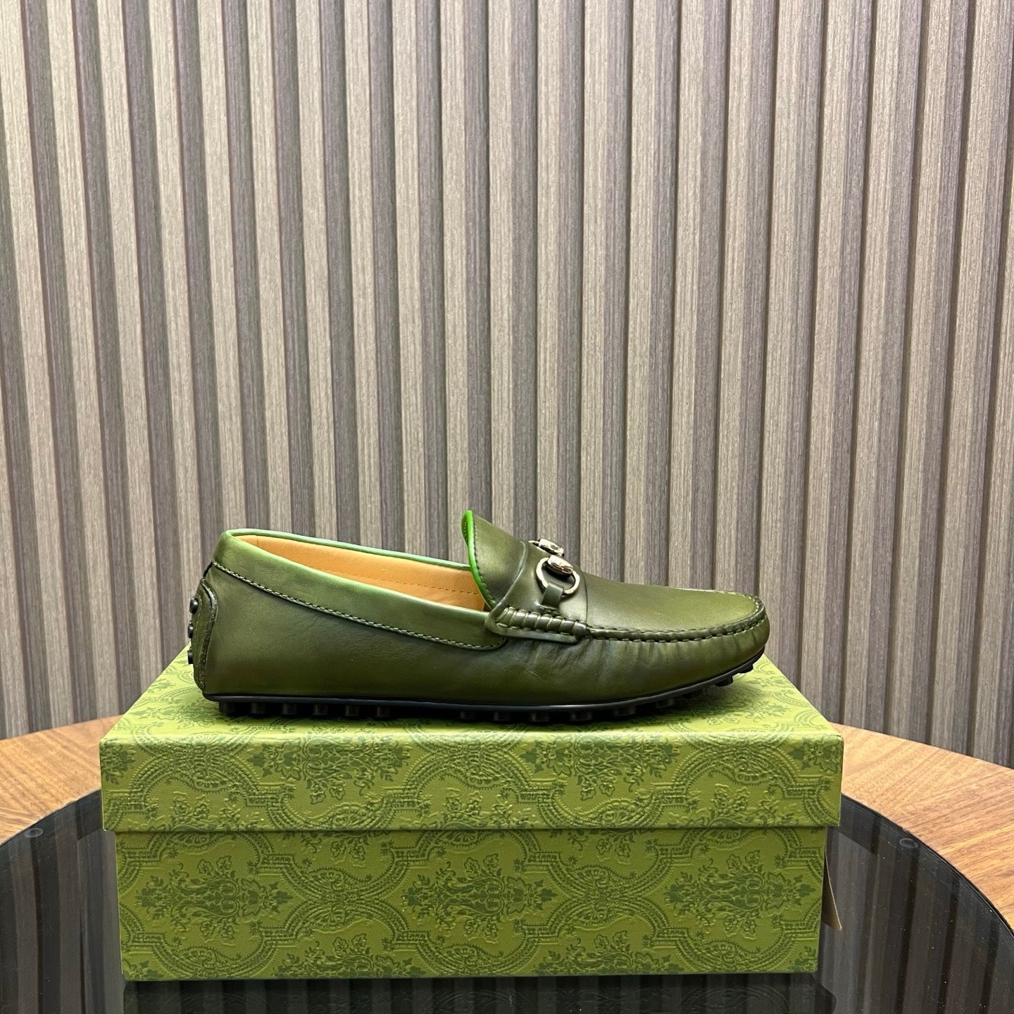 GG Men's Loafer Green Cowhide 731293