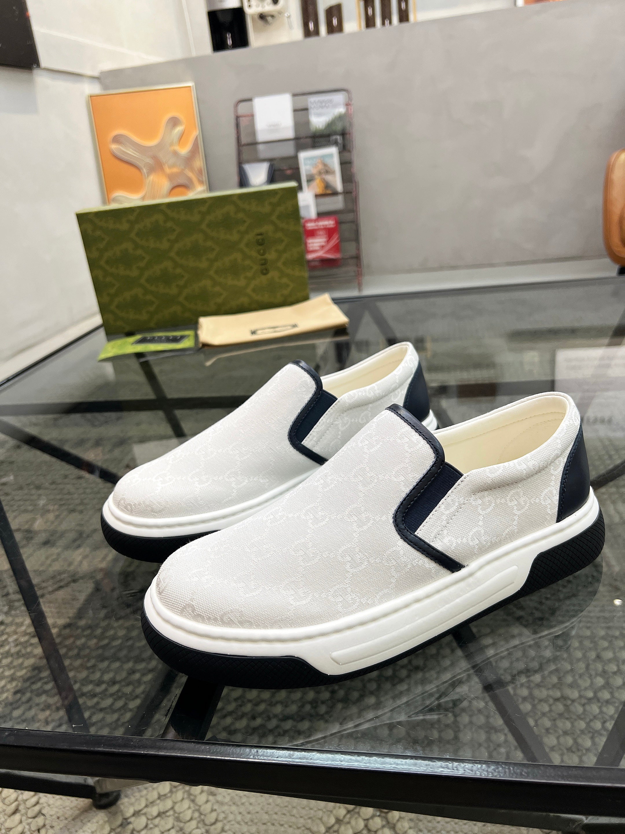 GG Men's Slip on Loafer White Printed Fabric 721523