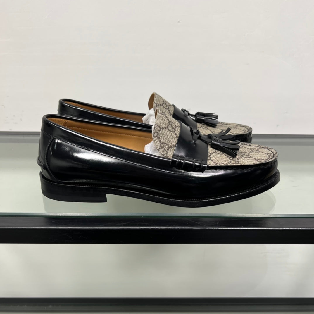 GG Men's Tassel Loafer Black Brown Patent Leather 559052