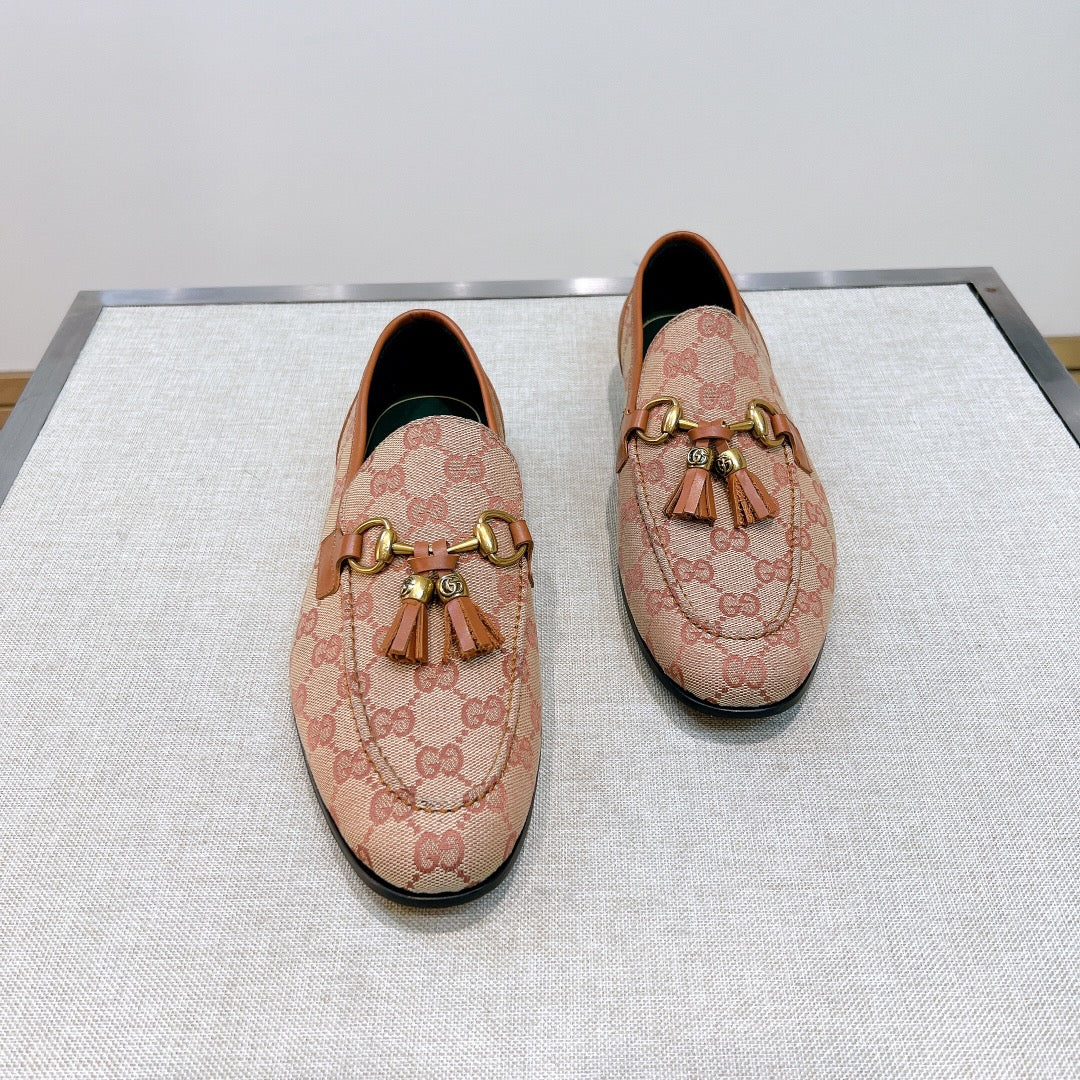 GG Men's Tassel Loafer Pink Canvas Calfskin 361365