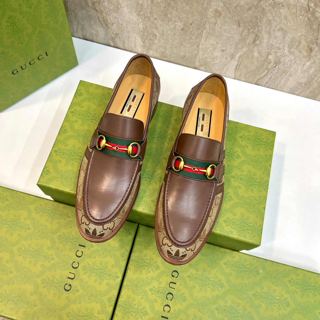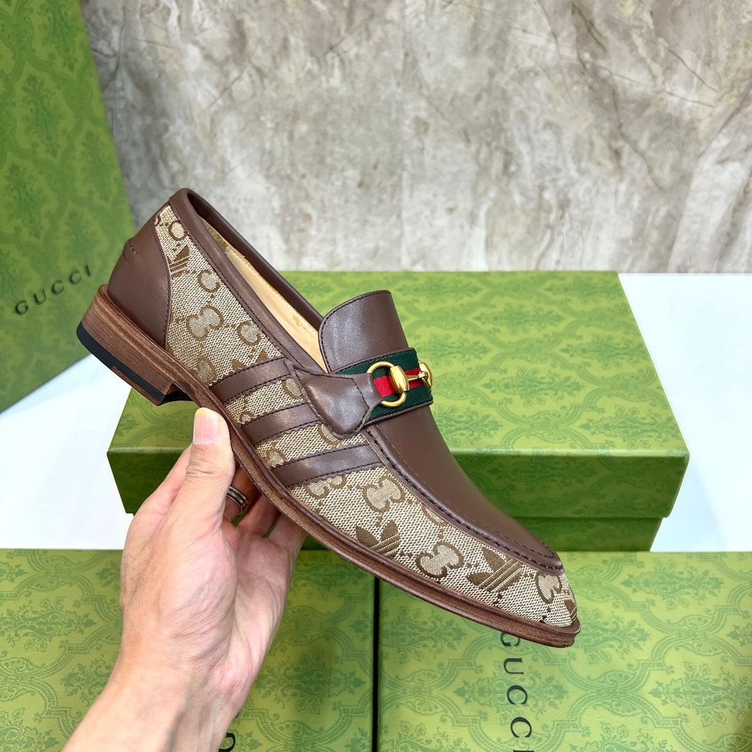 GG x Adidas Men's Loafer Brown Canvas Cowhide 724880