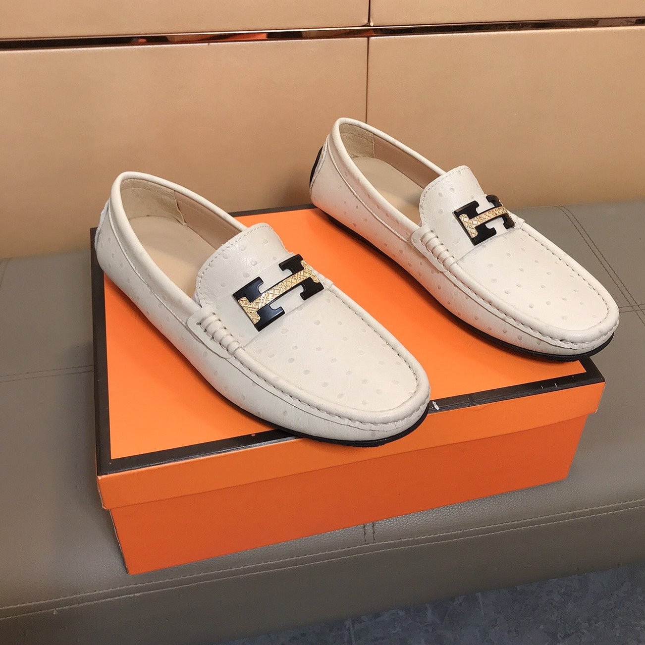 HM Men's Loafer Beige Cowhide 686623