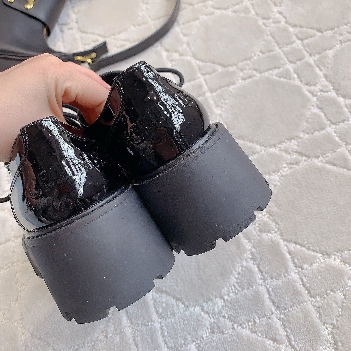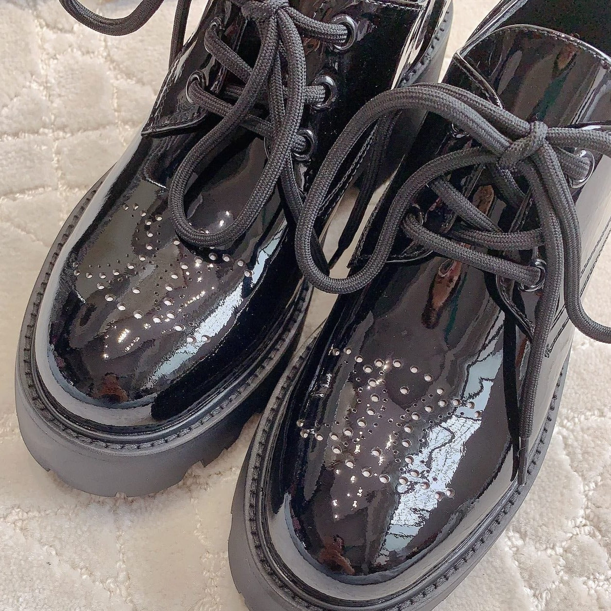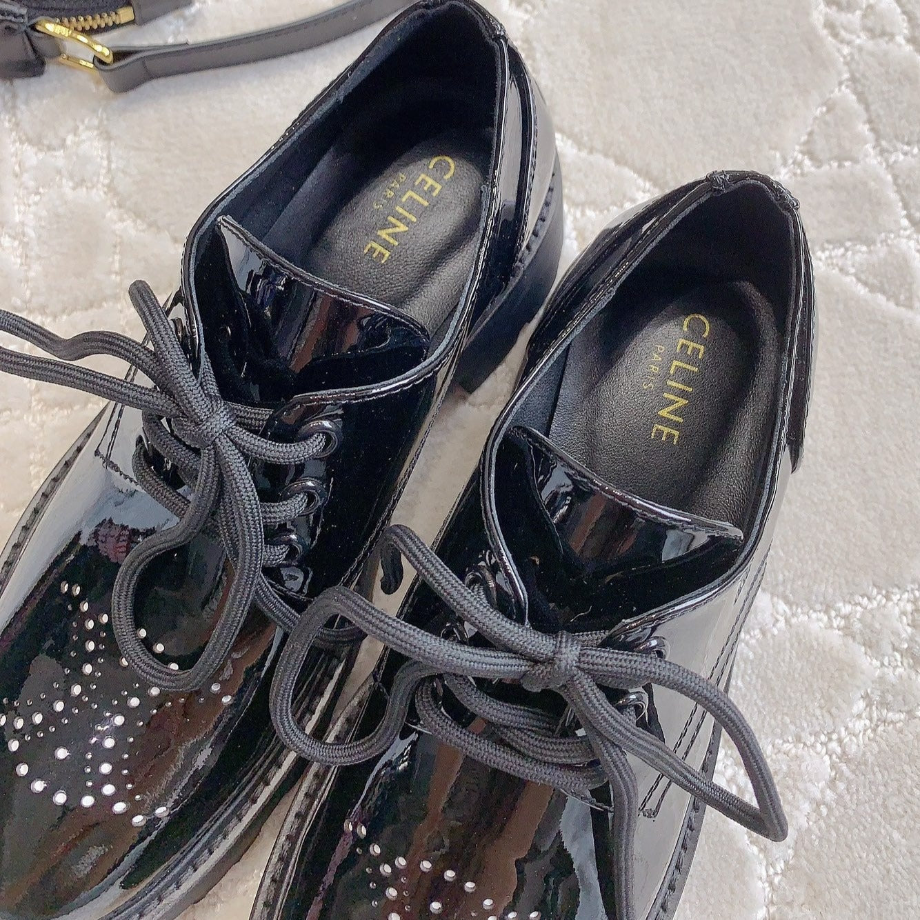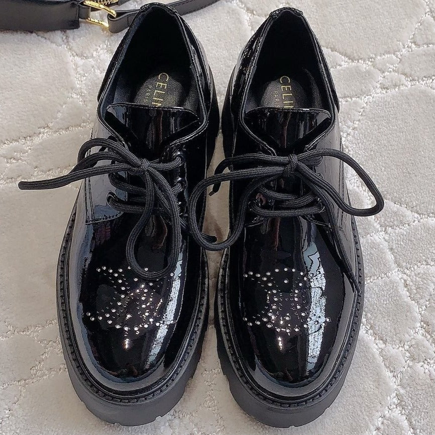 TRIOMPHE RANGERS DERBY WITH PERFORATED TRIOMPHE IN POLISHED BULL GLOSSY BLACK