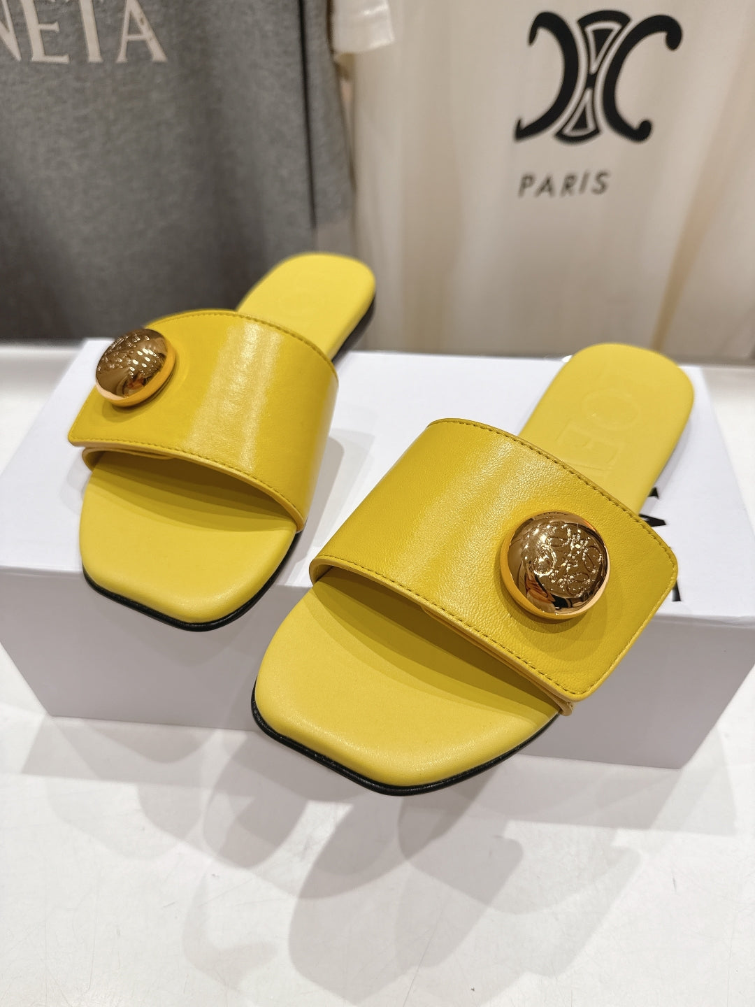 Loewe 25 Pebble Slide Yellow Calfskin