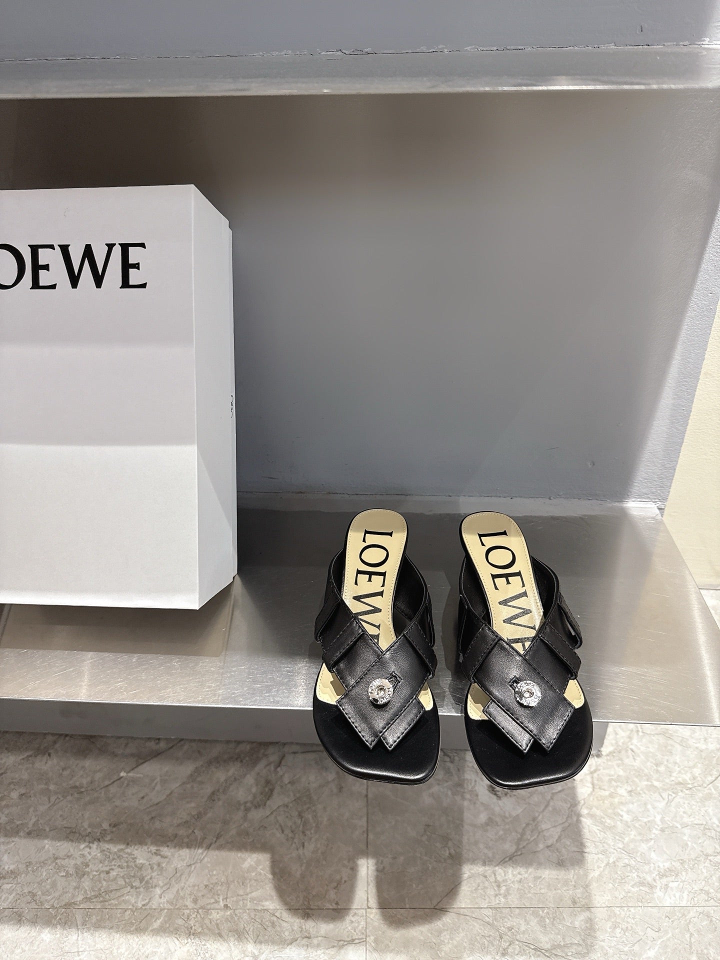 Loewe 25 Toy Panta Toe Thong 5cm Black Sheepskin