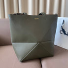 LOE 32 MEDIUM PUZZLE FOLD TOTE IN DARK KHAKI GREEN SHINY CALFSKIN