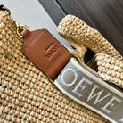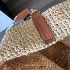Mini Slit Tote 30cm Beige Raffia Tan Calfskin