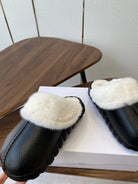Loewe slippers black leather wool 477788