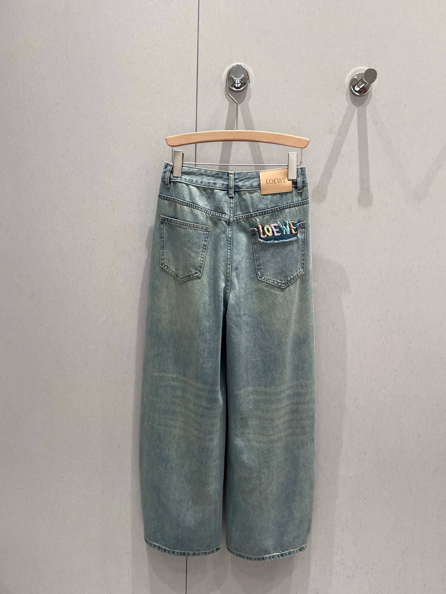Loewe 25 Colorful Embroidered Scimitar Jeans Blue Cotton 217978