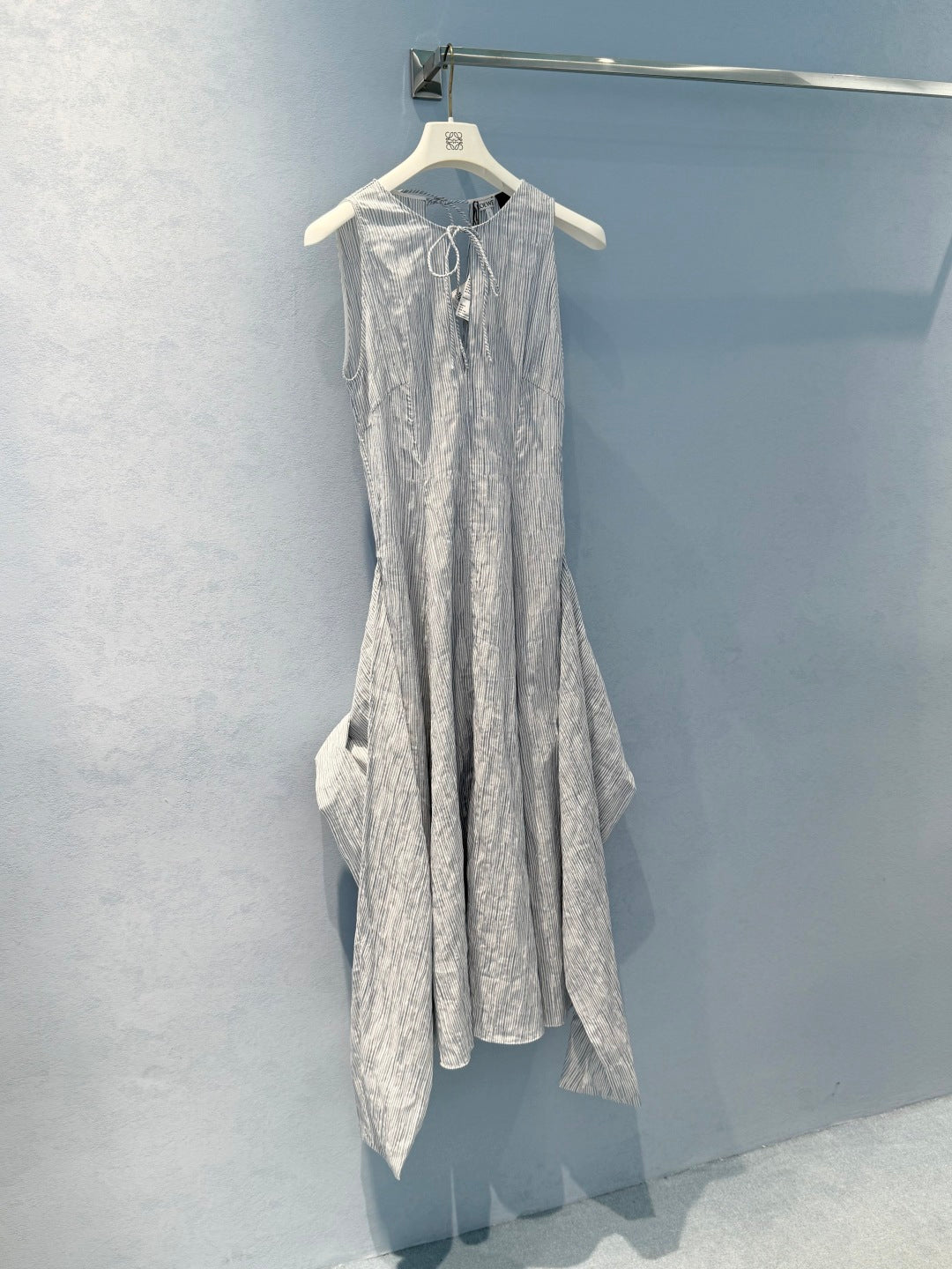 Loewe 25 Sleeveless Dress Blue mix White Cotton Polyamide