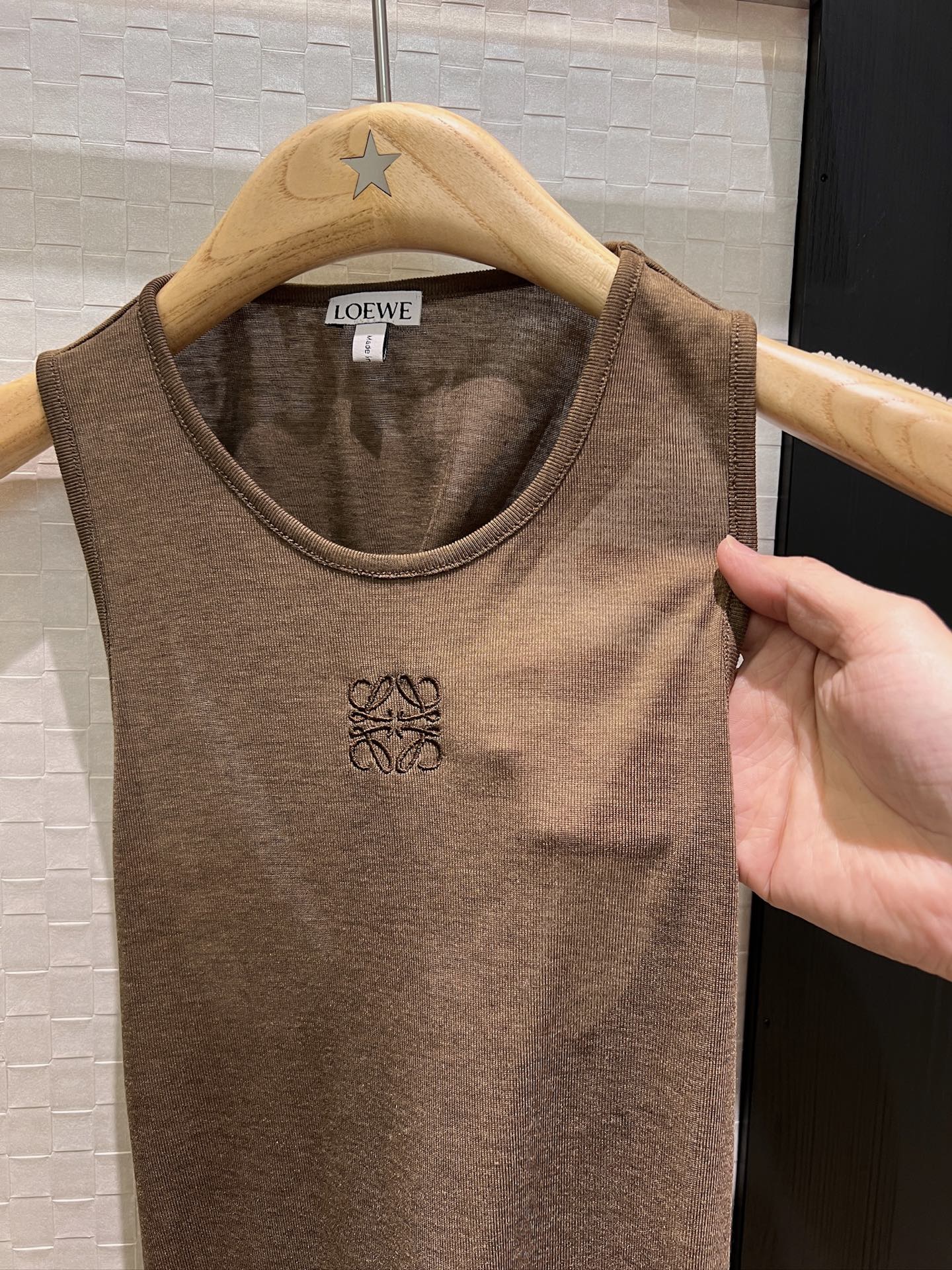 Loewe Embroidered Logo Knotted Vest Top Brown Polyester Fiber