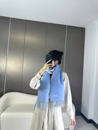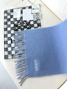 ANAGRAM SCARF 182 CM IN CERULEAN BLUE WOOL AND CASHMERE 408526