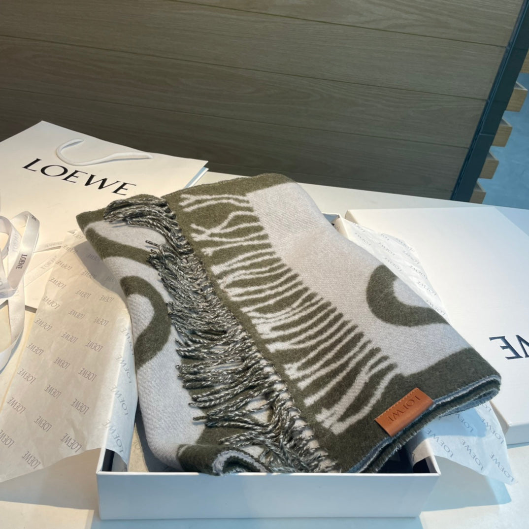 SCARF 180 CM IN ARMY GREEN MIX WHITE WOOL AND CASHMERE 415268