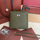 EXTRA POCKET BACKPACK L23.5 IN ARMY GREEN CALFSKIN WITH SILVER HARDWARE