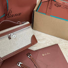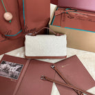 EXTRA POCKET L19 IN WHITE CANVAS AND BRONZE BROWN CALFSKIN WITH SILVER HARDWARE