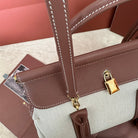 LOOM BAG 25 IN UMBER BROWN CALFSKIN WITH BEIGE LINEN GOLD HARDWARE