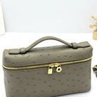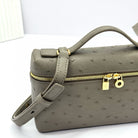 LP Extra Bag Ostrich Pattern Gray Brown Gold Buckle Calfskin