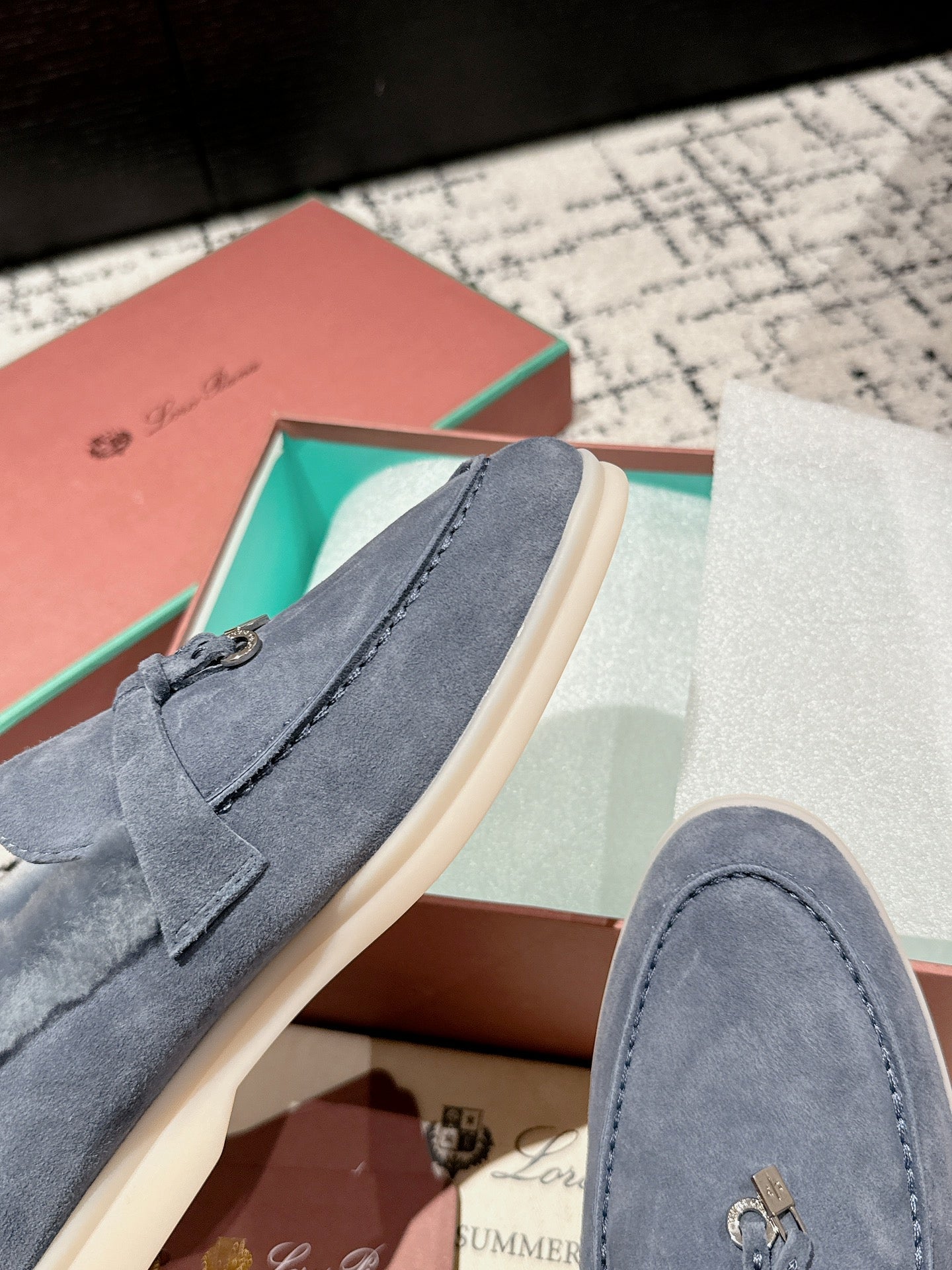 LP Summer Charms Walk Loafers In Light Aegean Suede With Rabbit Fur Lining 985647