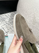 LP Summer Charms Walk Loafers In Light Brown Grey Mix Green Khaki Suede With Rabbit Fur Lining 985646