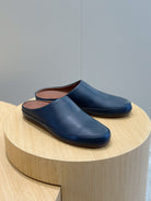 LP TOMORI SABOT MULES NAVY MESH CALFSKIN