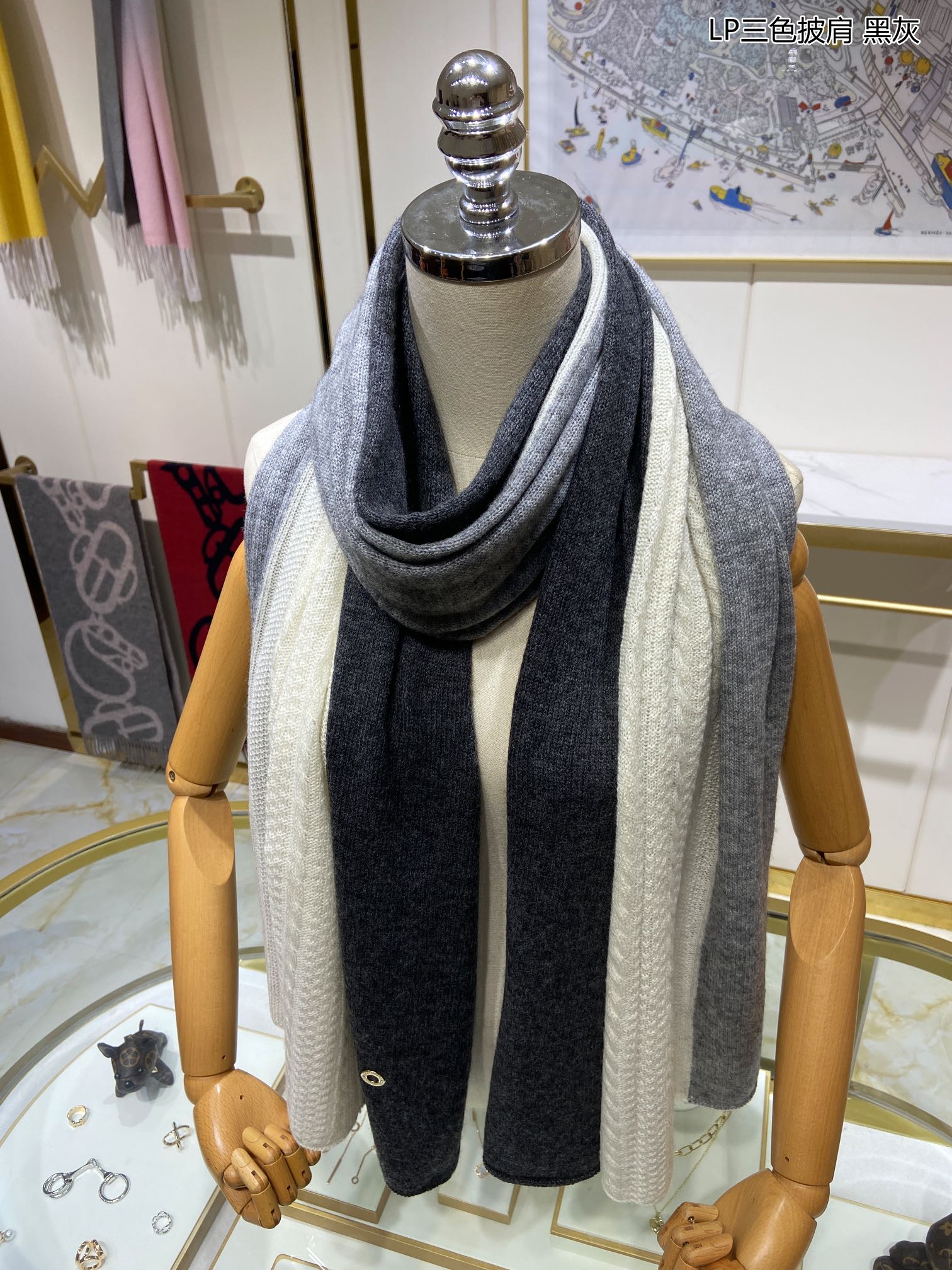 LP Scarf 190 CM In Grey White Mix Black Cashmere 649676