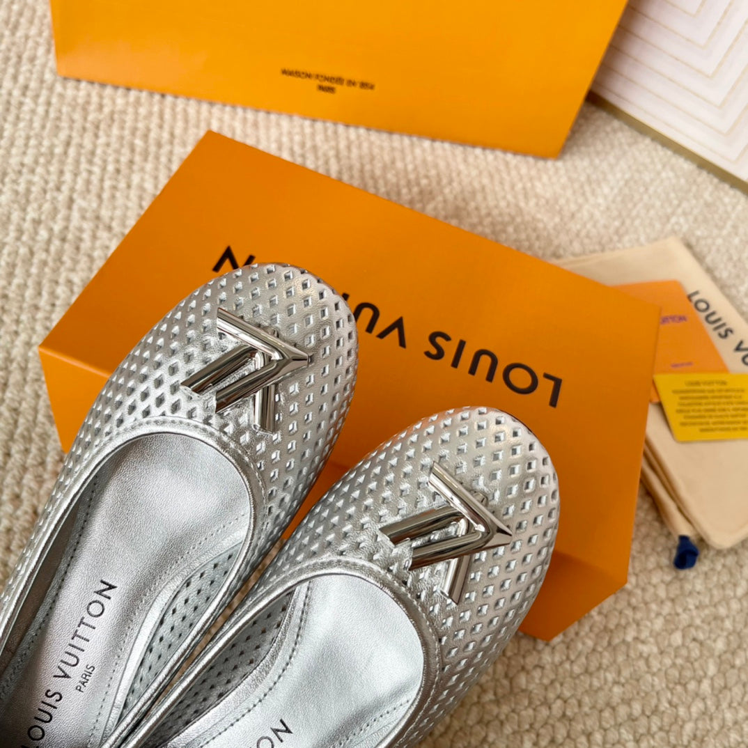 LV Shake Flat Ballerina Silver Cowhide