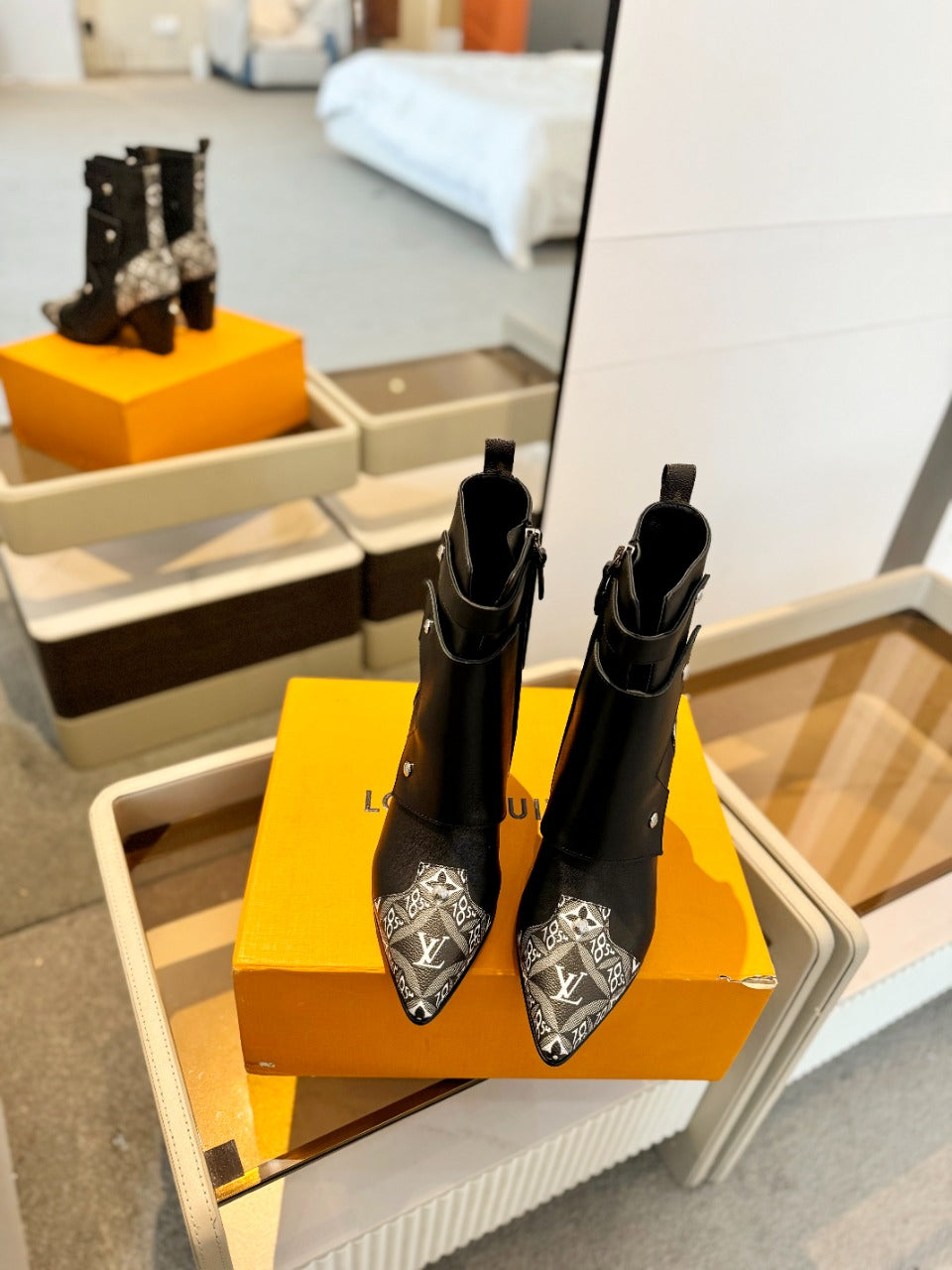 LV Trinity Ankle Boot 75mm Black Mix White Monogram Calfskin