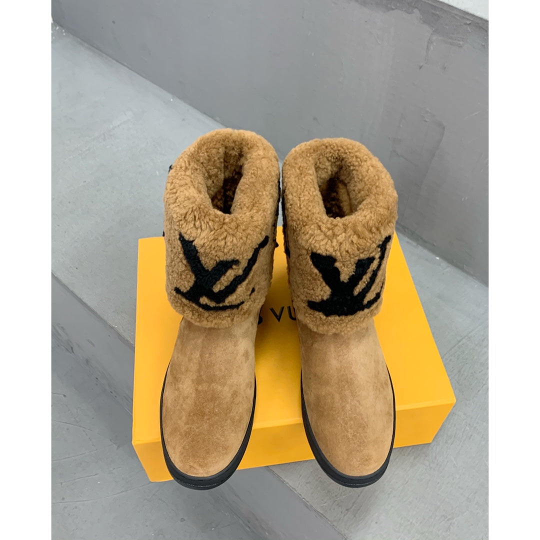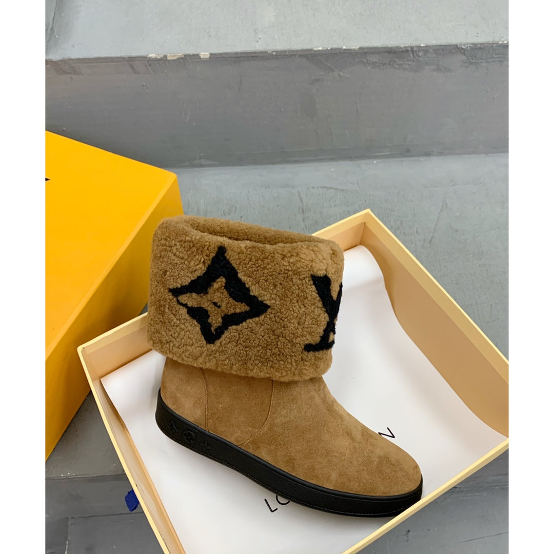 LV Snowdrop Flat Ankle Boot Brown Monogram White Suede