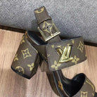 LV Horizon Ankle Strap Sandals 75mm Dark Brown Calfskin