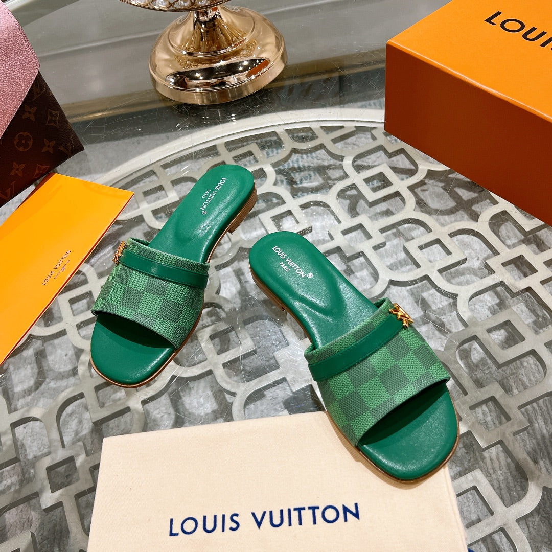 lv sandal isola flat mule green damier calfskin