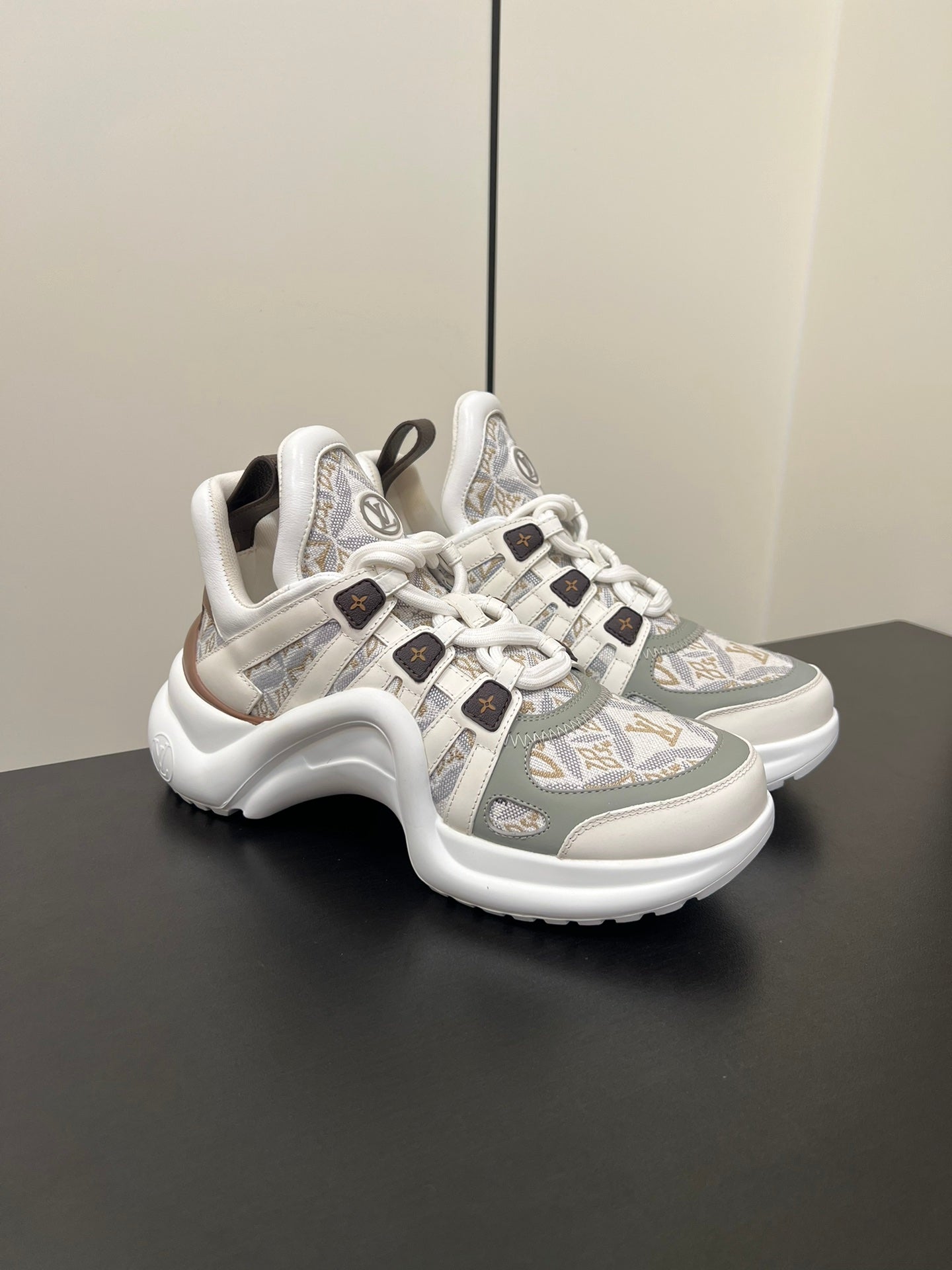 LV Archlight Sneaker 50mm White Mix Gray Brown Monogram Jacquard Fabric