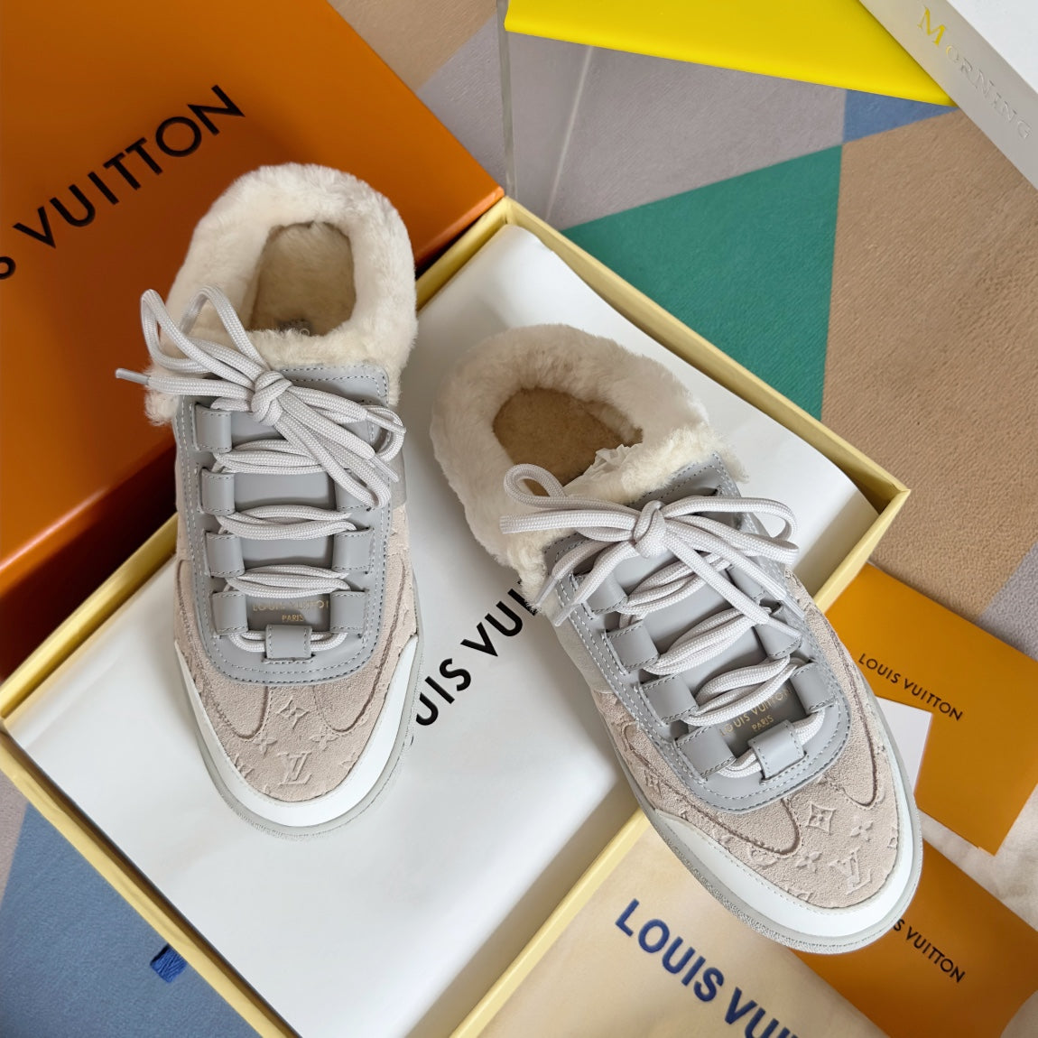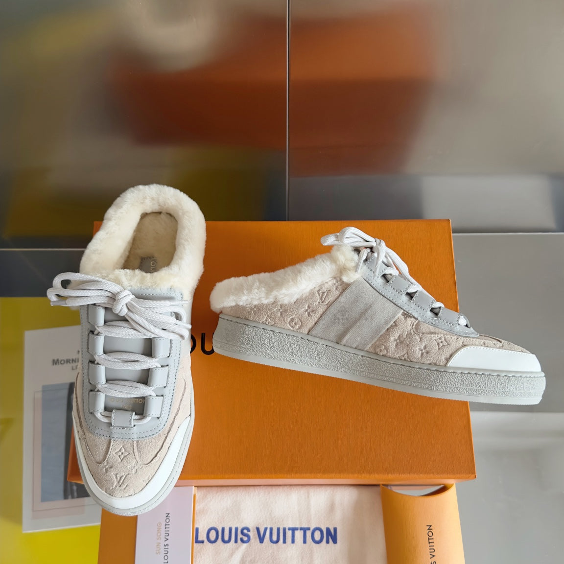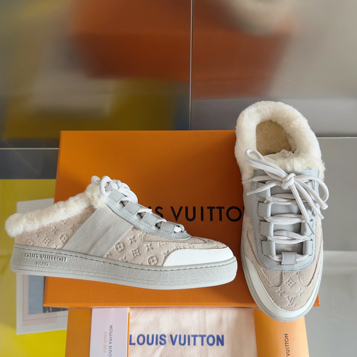 LV Lous Open Back Sneaker 30mm Beige Monogram Suede