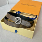 LV Circle Nautical 20mm Reversible Belt Silver Buckle Black Brown Lambskin