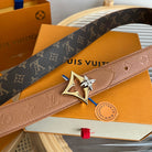 LV Flowergram 30mm Reversible Belt Brown Empreinte Calfskin