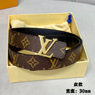 LV INITIALES 30 MM REVERSIBLE BELT IN BROWN MONOGRAM AND BLACK CALFSKIN GOLD HARDWARE