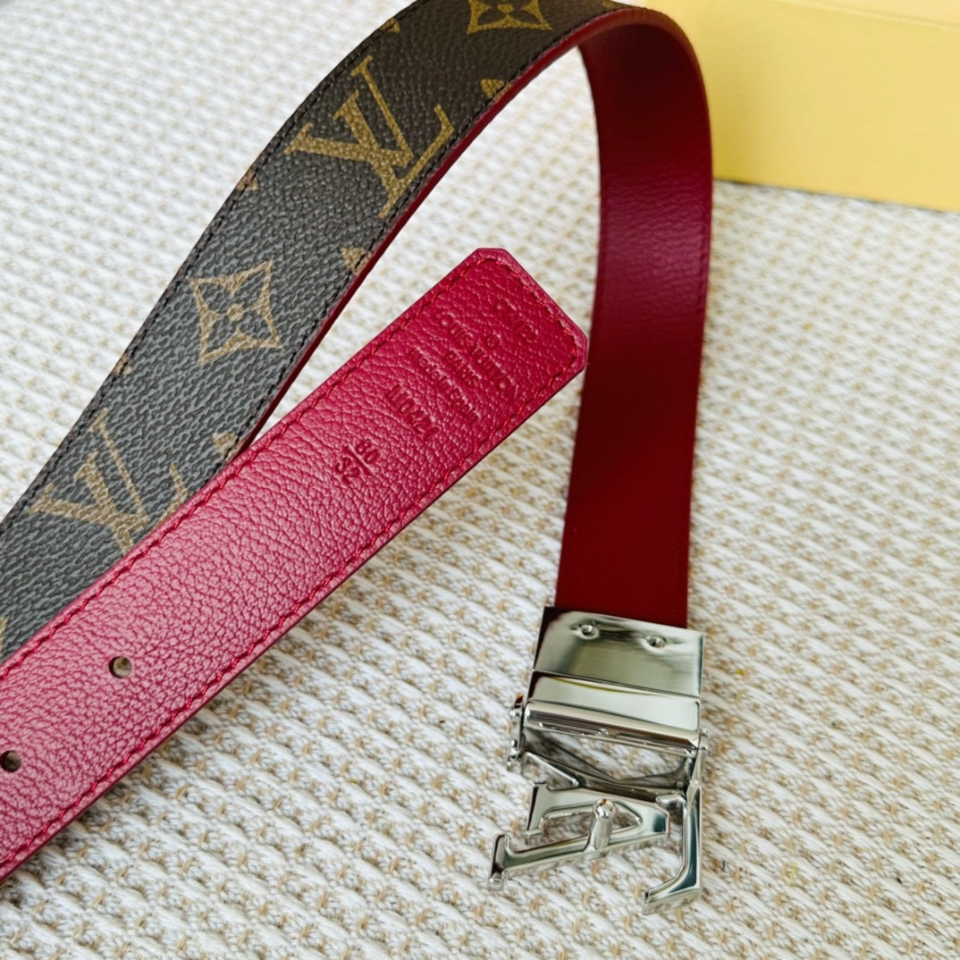 LV Initiales 30mm Reversible Belt Silver Rotating Buckle Burgundy Brown Leather
