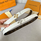 LV MINI FLOWERGRAM 30MM REVERSIBLE BELT IN WHITE CALFSKIN GOLD HARDWARE