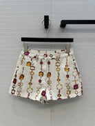 LV 25 Bourgoise Series Printed Zipper Denim Shorts White Cotton