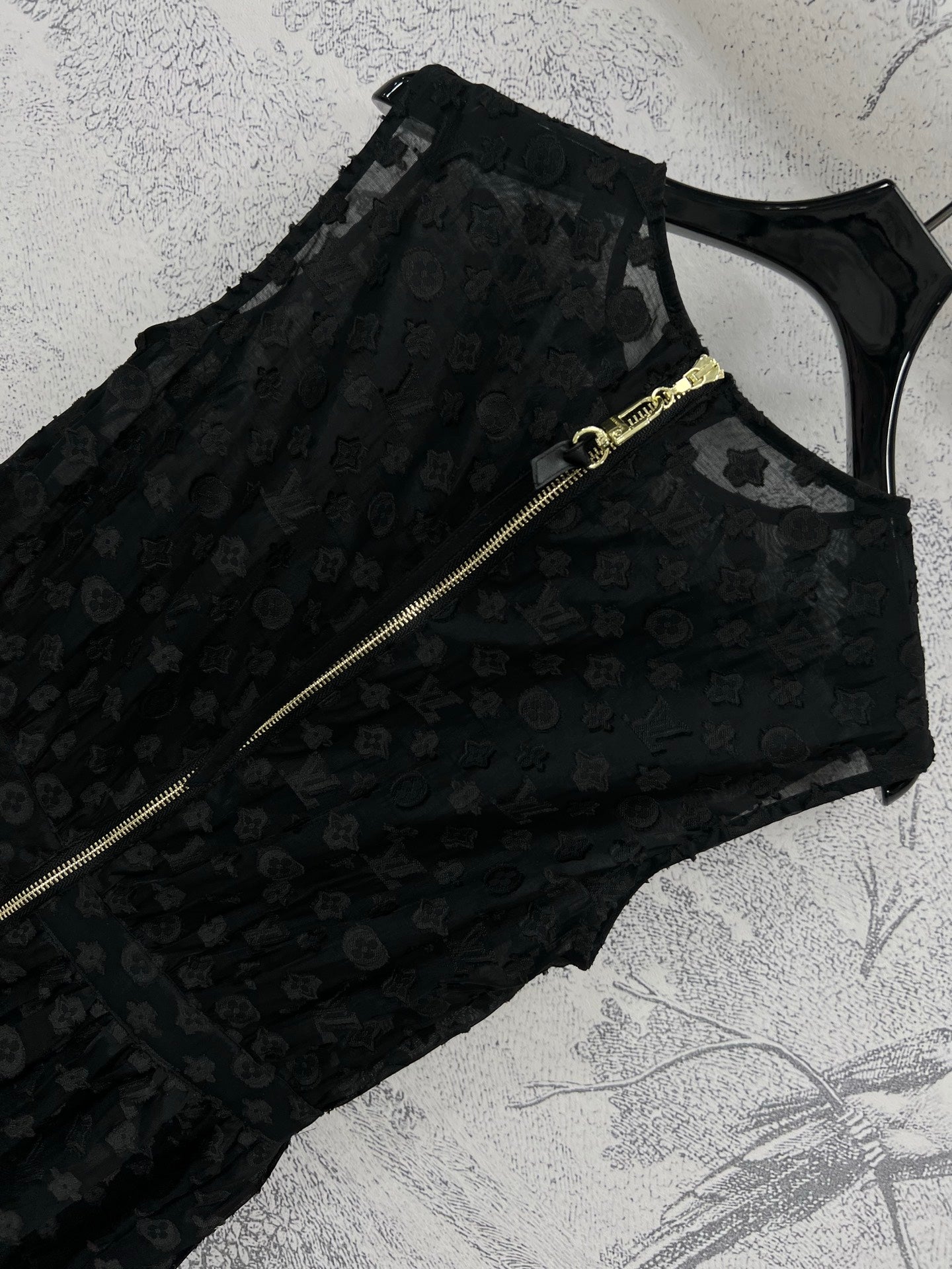 LV 25 Coin Letter Jacquard Pattern Decoration Dress Black Pink Poliester