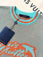 LV 25 Dolphin Jacquard Short Sleeve Shirt Blue Sweater Knit