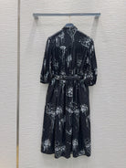 LV 25 Elegant Long Sleeve Dress Black Polyester