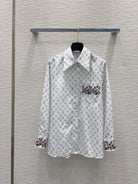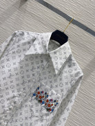 LV 25 Floral Wristband Shirt White Grey Polyester