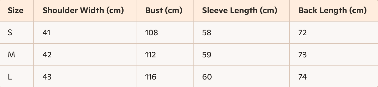 - Size : S, M,L