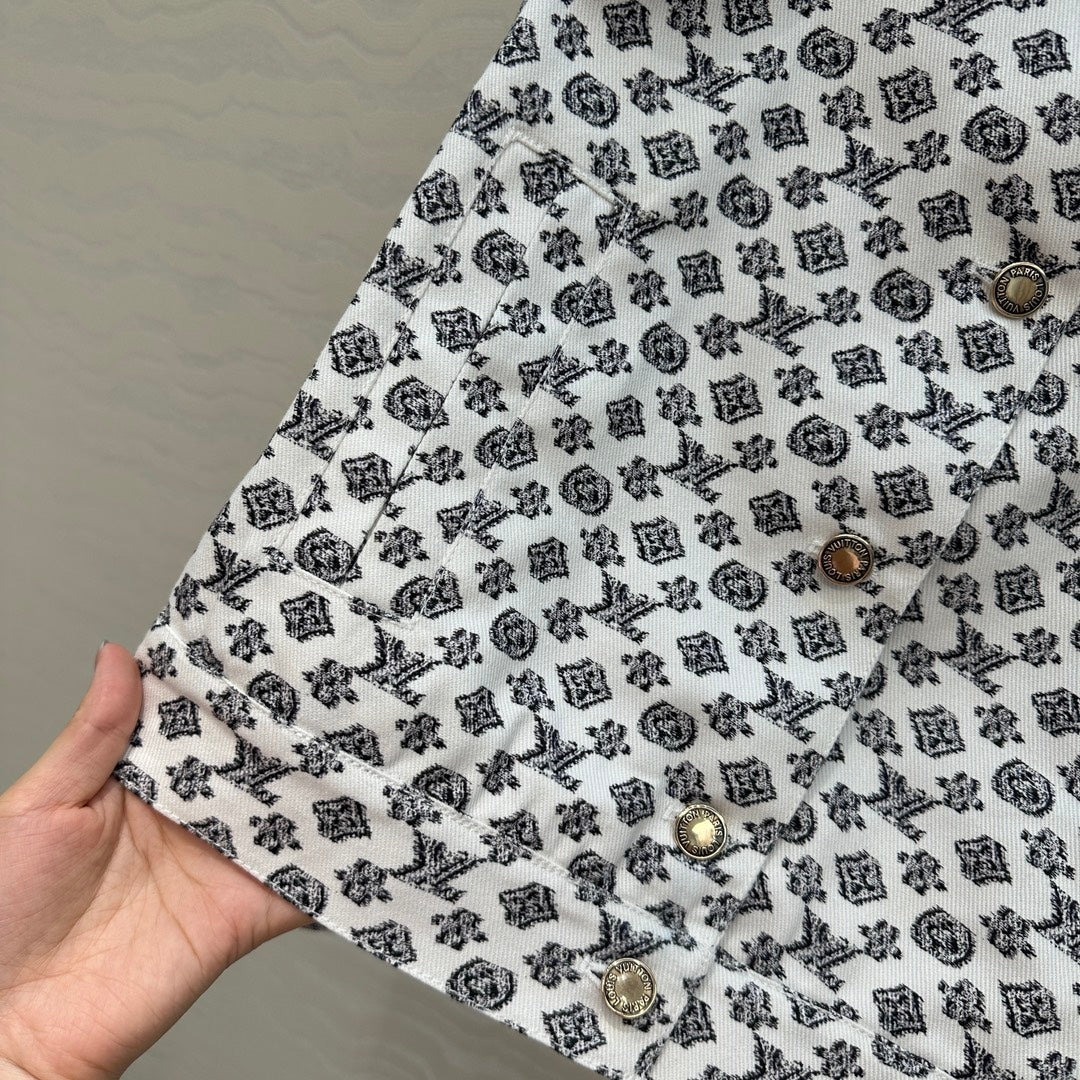 LV 25 Modern Logo Denim Long Jacket Black White Poliester