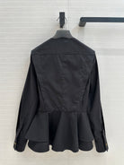 LV 25 Pleated Waist Round Neck Shirt Black Cotton