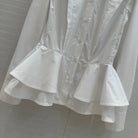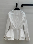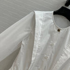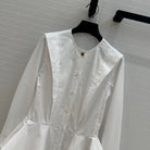 LV 25 Pleated Waist Round Neck Shirt White Cotton