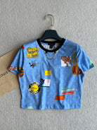 LV 25 Print Contrast Color Threaded Edge Collar T-shirt White Blue Cotton